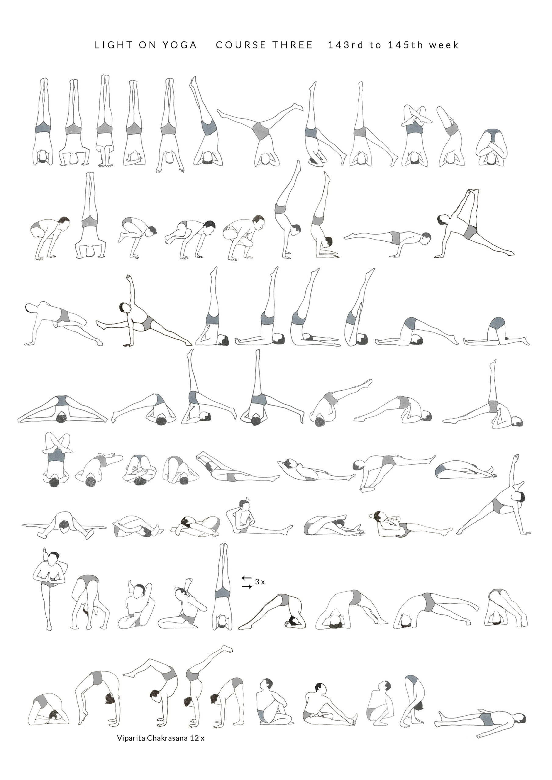 Dwipada Viparita Dandasana (516) von Salamba Sirsasana I (184) an und dreimal zurück